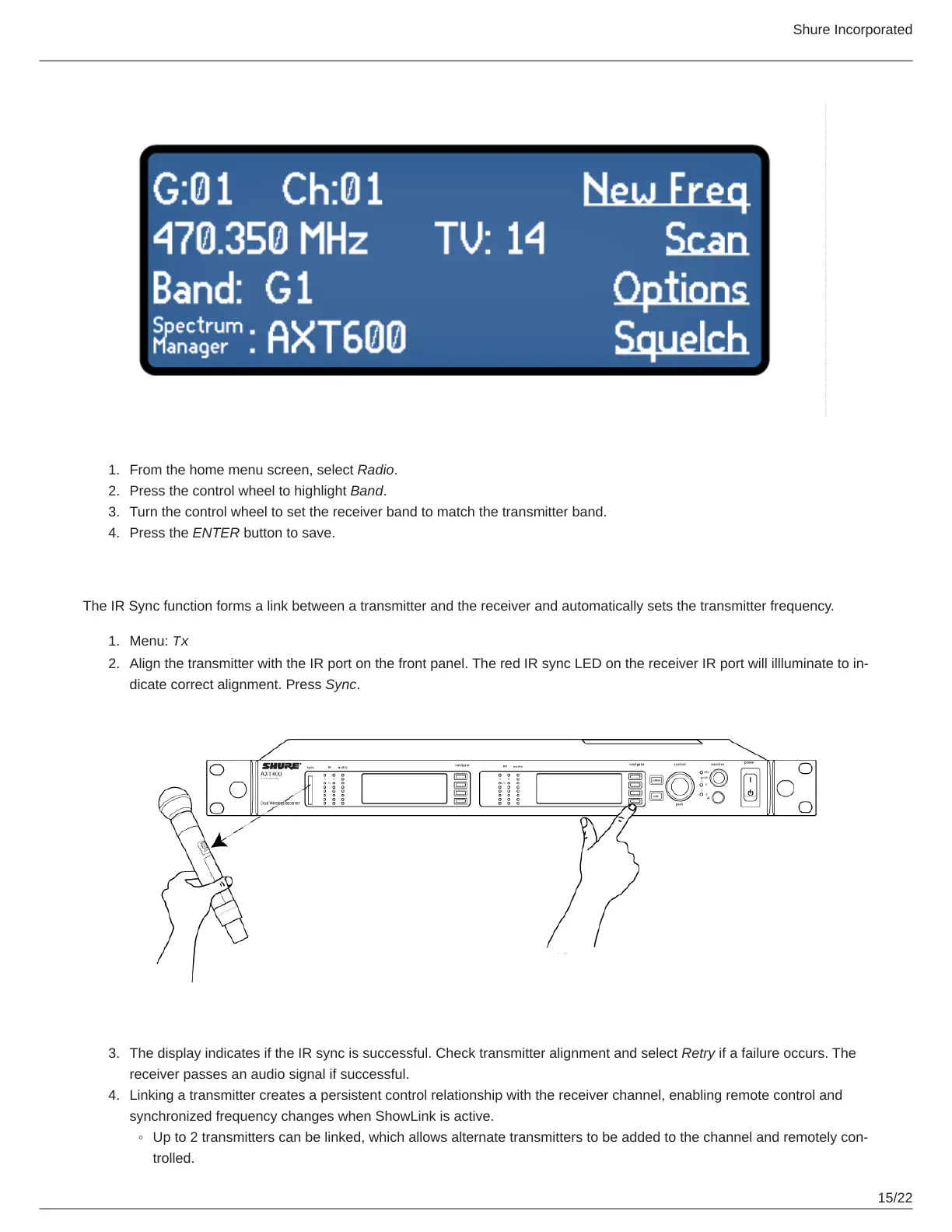 Turn the control wheel to set the receiver band to match the transmitter band.