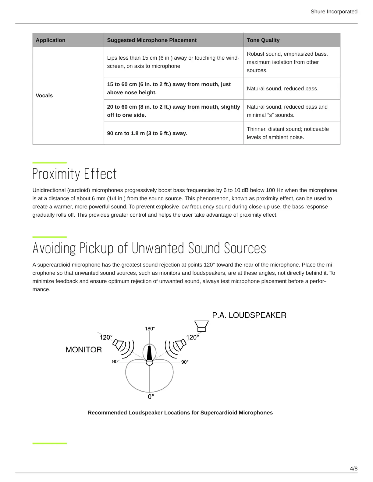 is at a distance of about 6 mm (1/4 in.) from the sound source. This phenomenon, known as proximity effect, can be used to