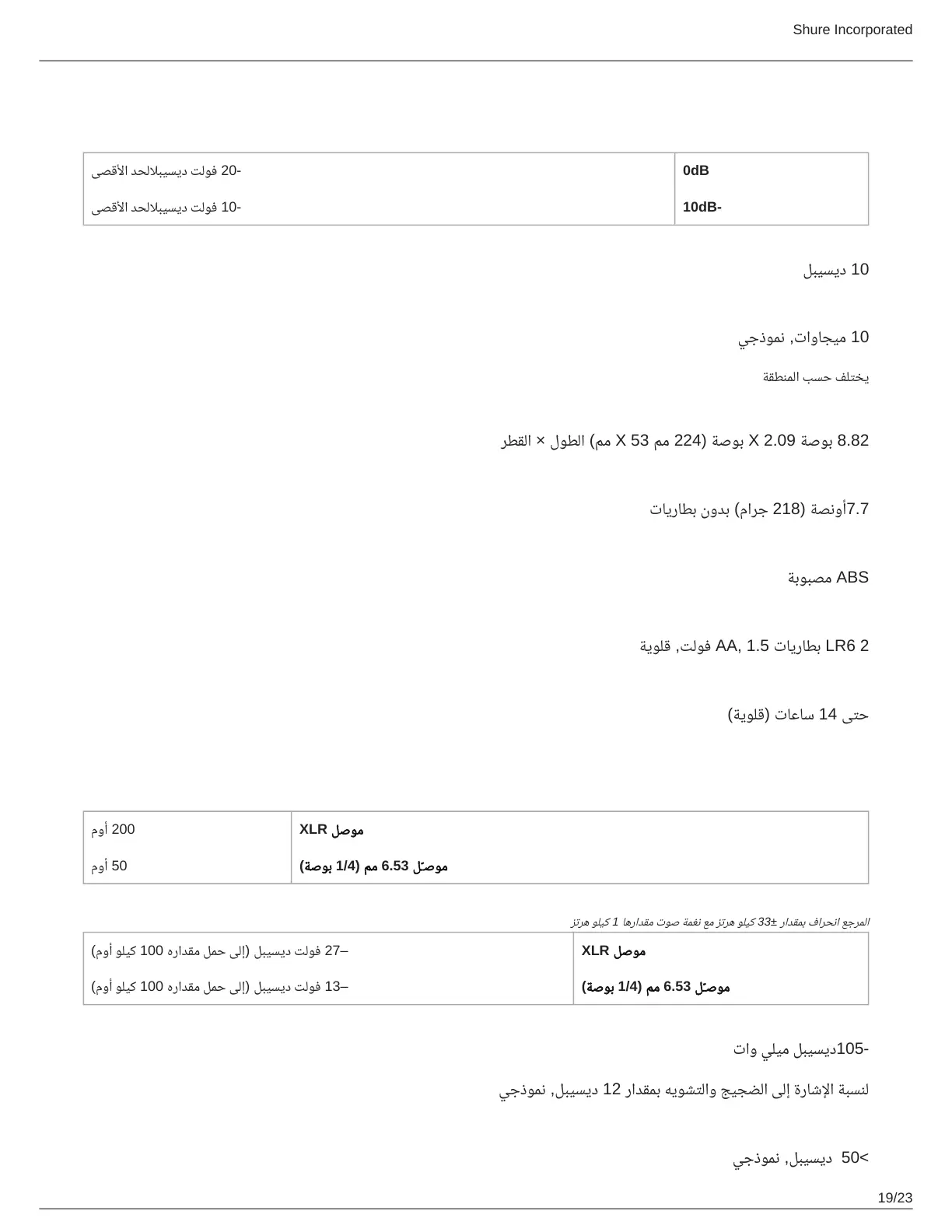-10dB-10ﻰﺼﻗﻷﺍ ﺪﺤﻟﻼﺒﻴﺴﻳﺩ ﺖﻟﻮﻓ