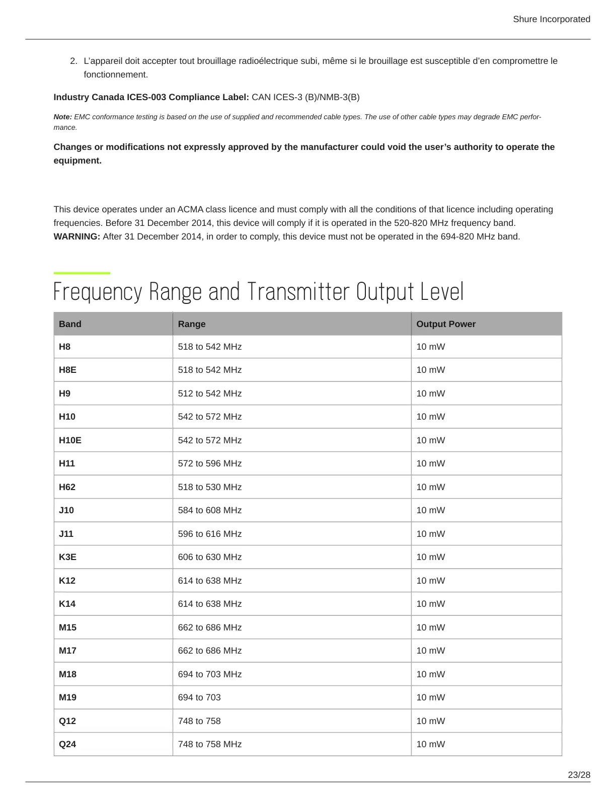 frequencies. Before 31 December 2014, this device will comply if it is operated in the 520-820 MHz frequency band.