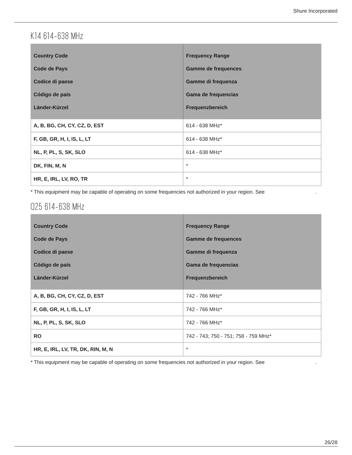 NL, P, PL, S, SK, SLO 614 - 638 MHz*