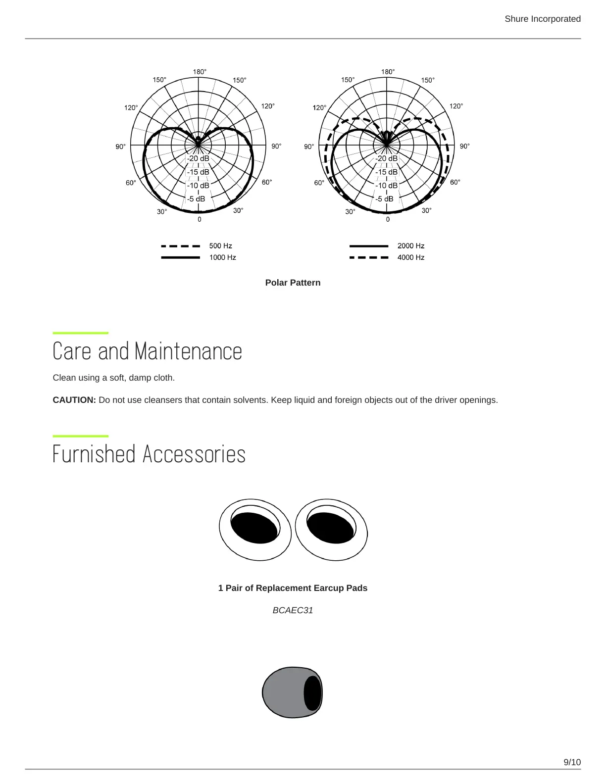 Shure BRH31M - Care and Maintenance; Furnished Accessories