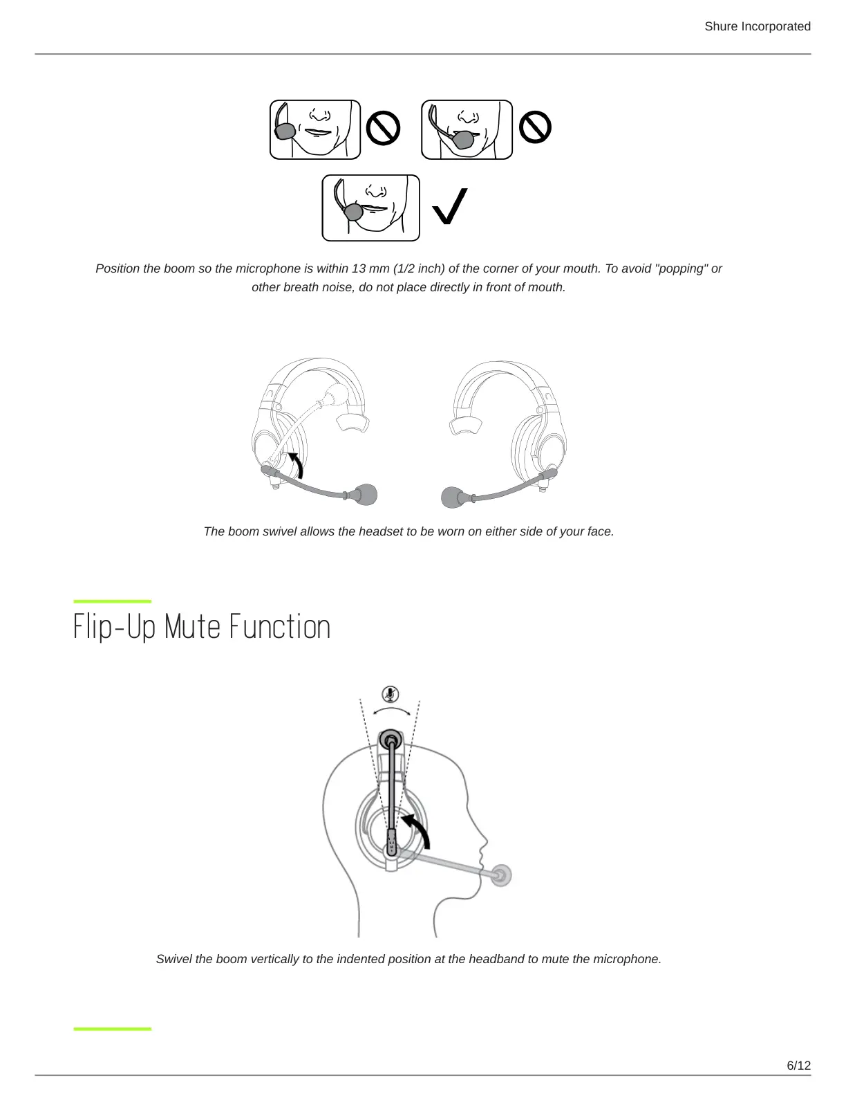 Position the boom so the microphone is within 13 mm (1/2 inch) of the corner of your mouth. To avoid "popping" or