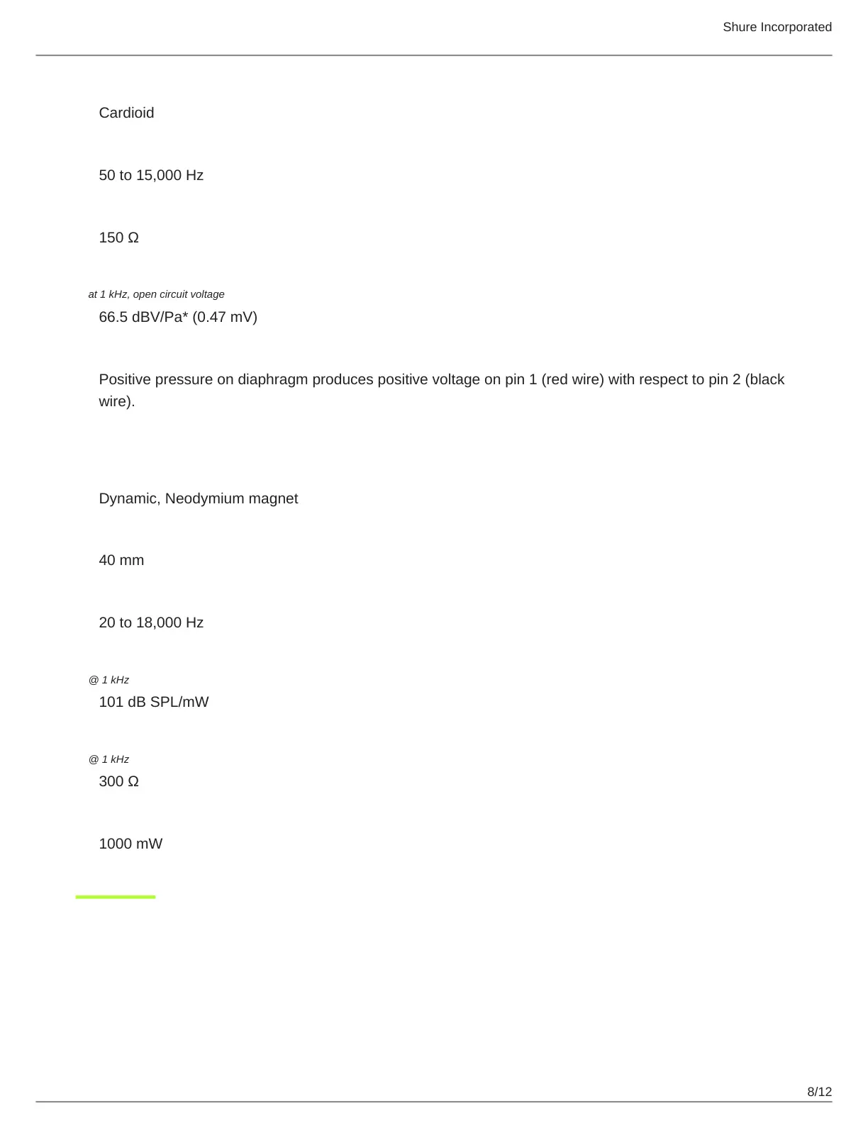 at 1 kHz, open circuit voltage