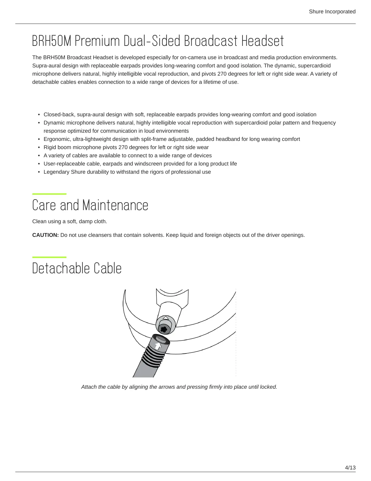 microphone delivers natural, highly intelligible vocal reproduction, and pivots 270 degrees for left or right side wear. A variety of