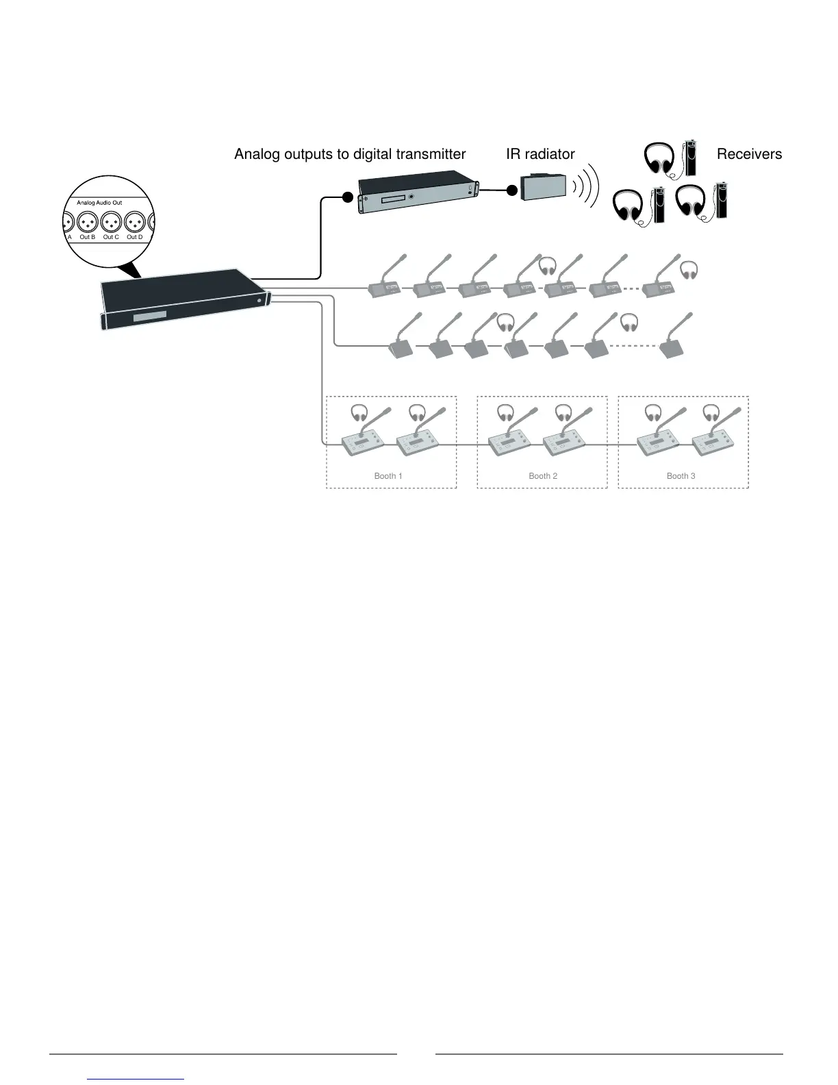 For additional monitoring, connect a wireless language distribution system to one of the CCU audio outputs. Use the