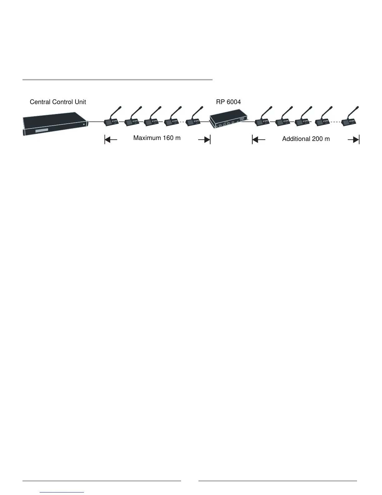 The CCU operates a system with up to 160 m of shielded Cat5e cable. Add an EX 6010 or the RP 6004 Repeater to add