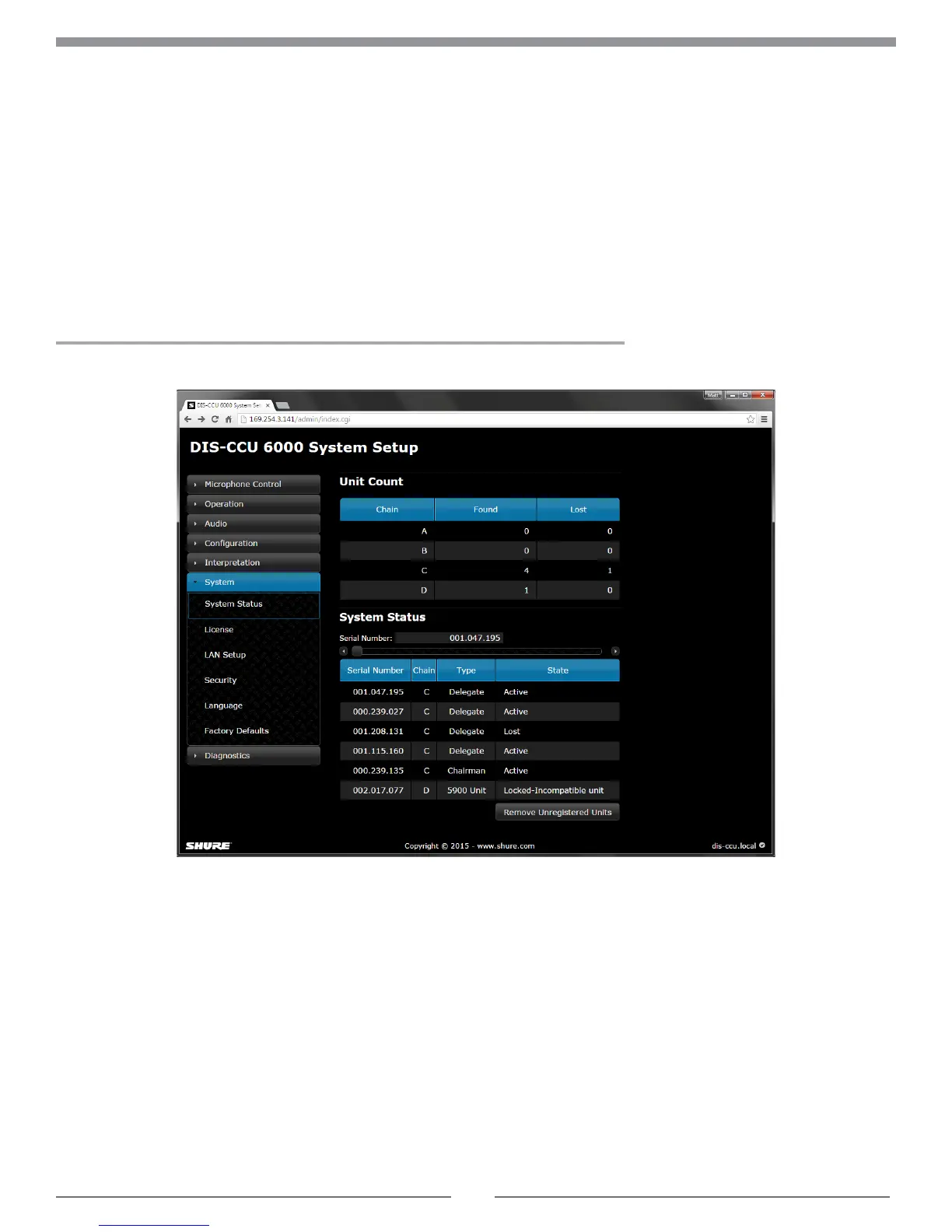 The web interface offers advanced parameters for setting up the system, and enables the chairman or moderator to
