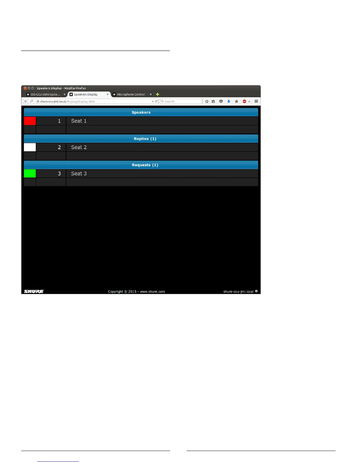 The display page is used to provide the meeting participants with a view of the speaker, speak request, and reply lists.