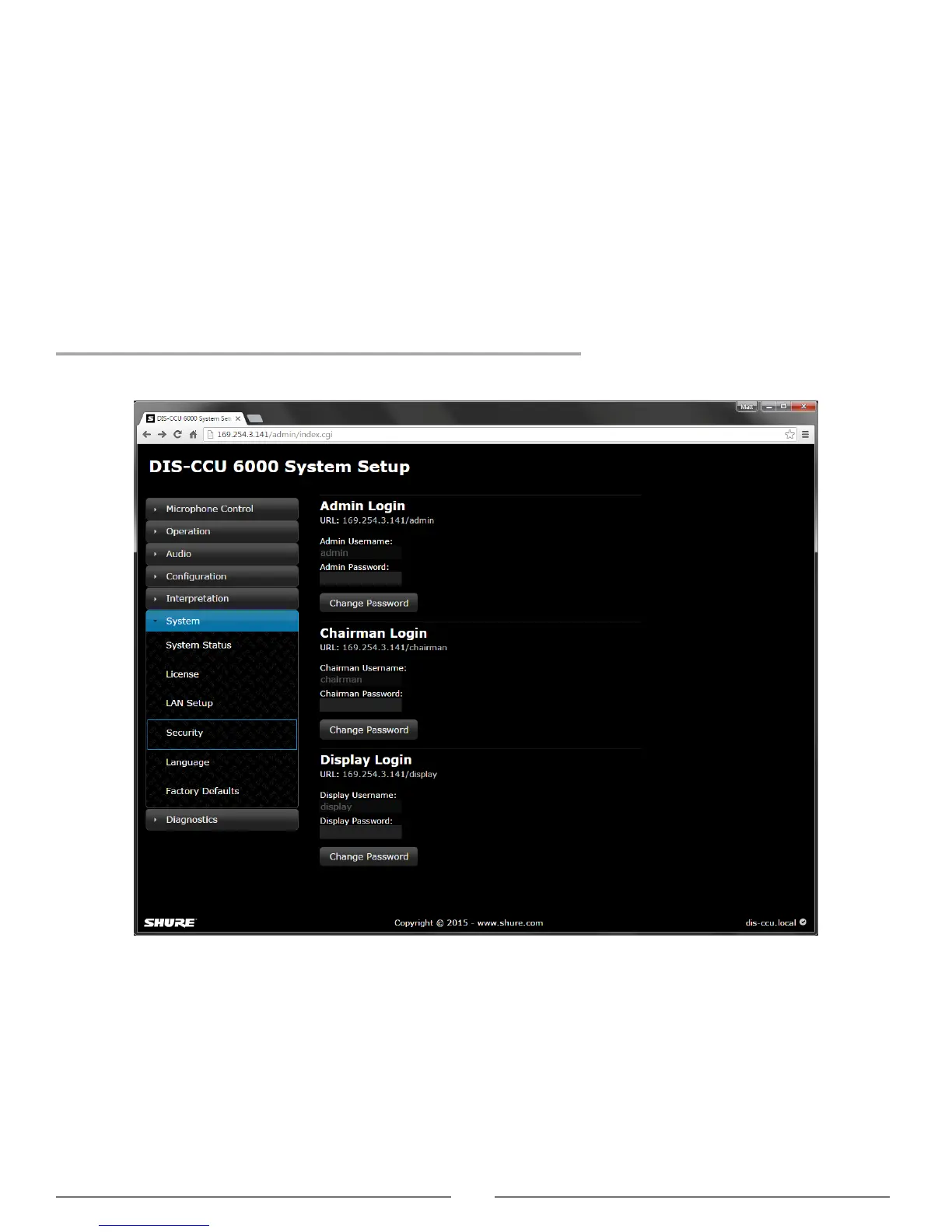 the three interface addresses: administrator, chairman, and display.