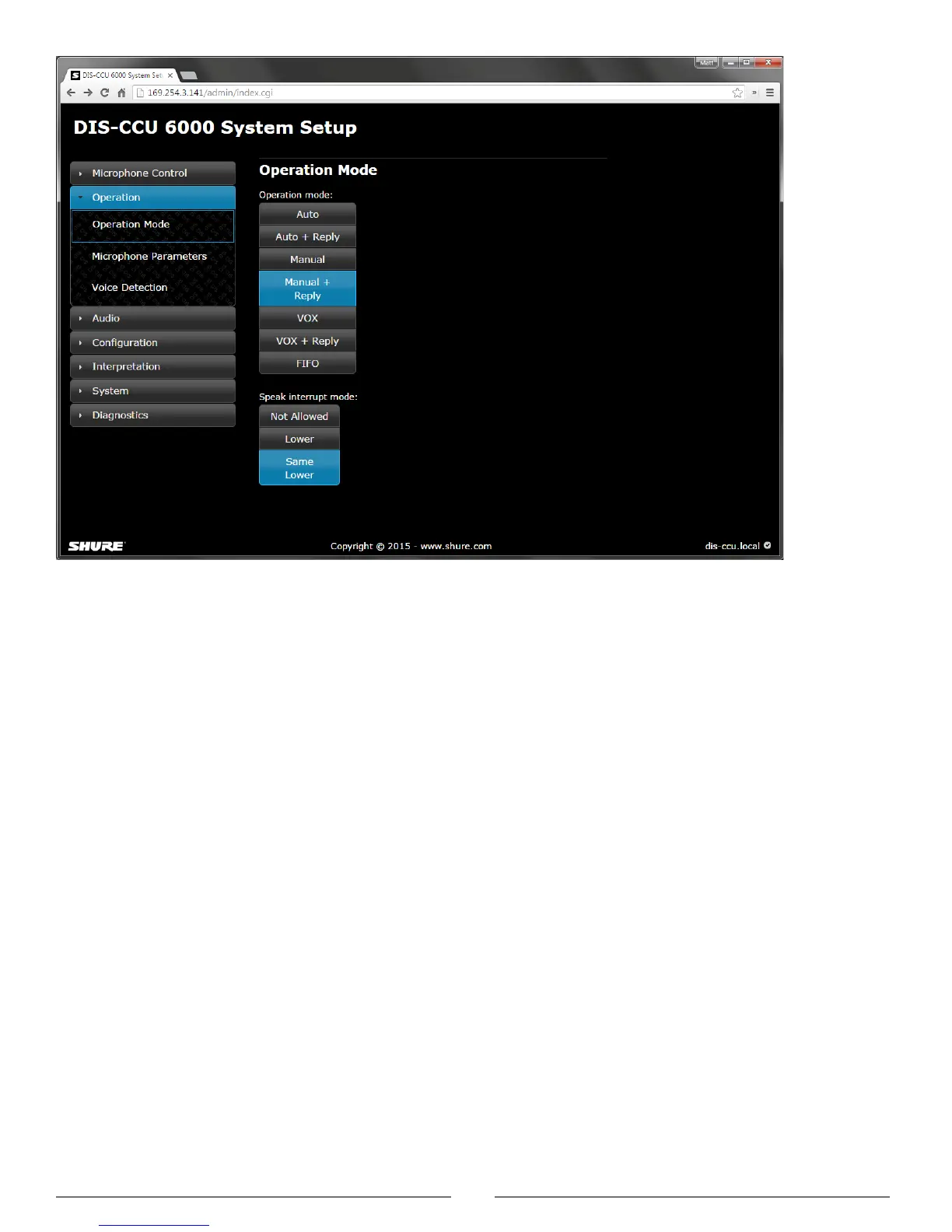 Browser interface: Operation > Operation Mode or from the Microphone Control page