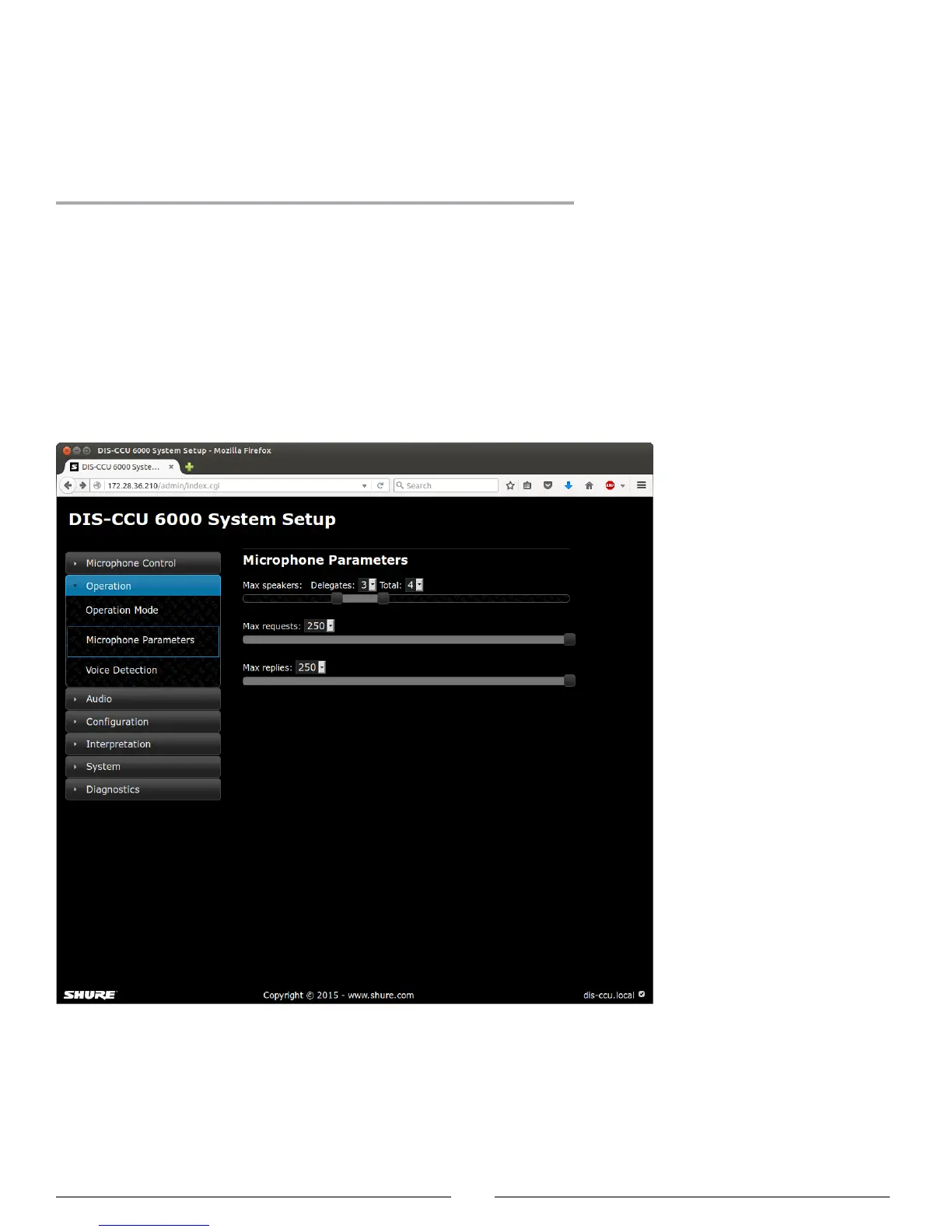Go to Operation > Microphone Parameters to adjust several speaker settings:
