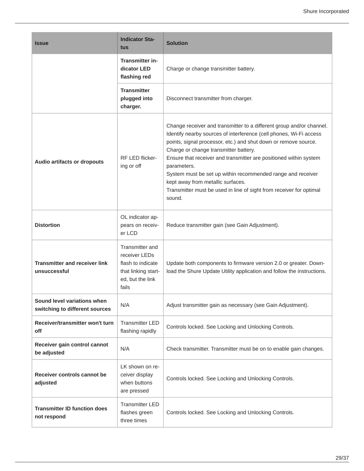 N/A Adjust transmitter gain as necessary (see Gain Adjustment).