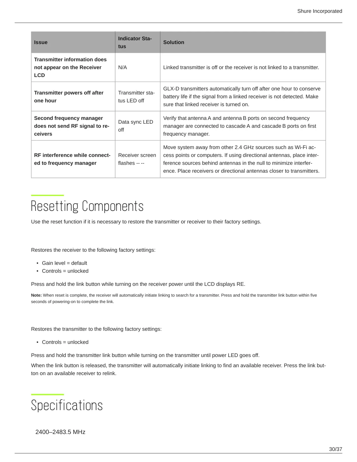 Use the reset function if it is necessary to restore the transmitter or receiver to their factory settings.