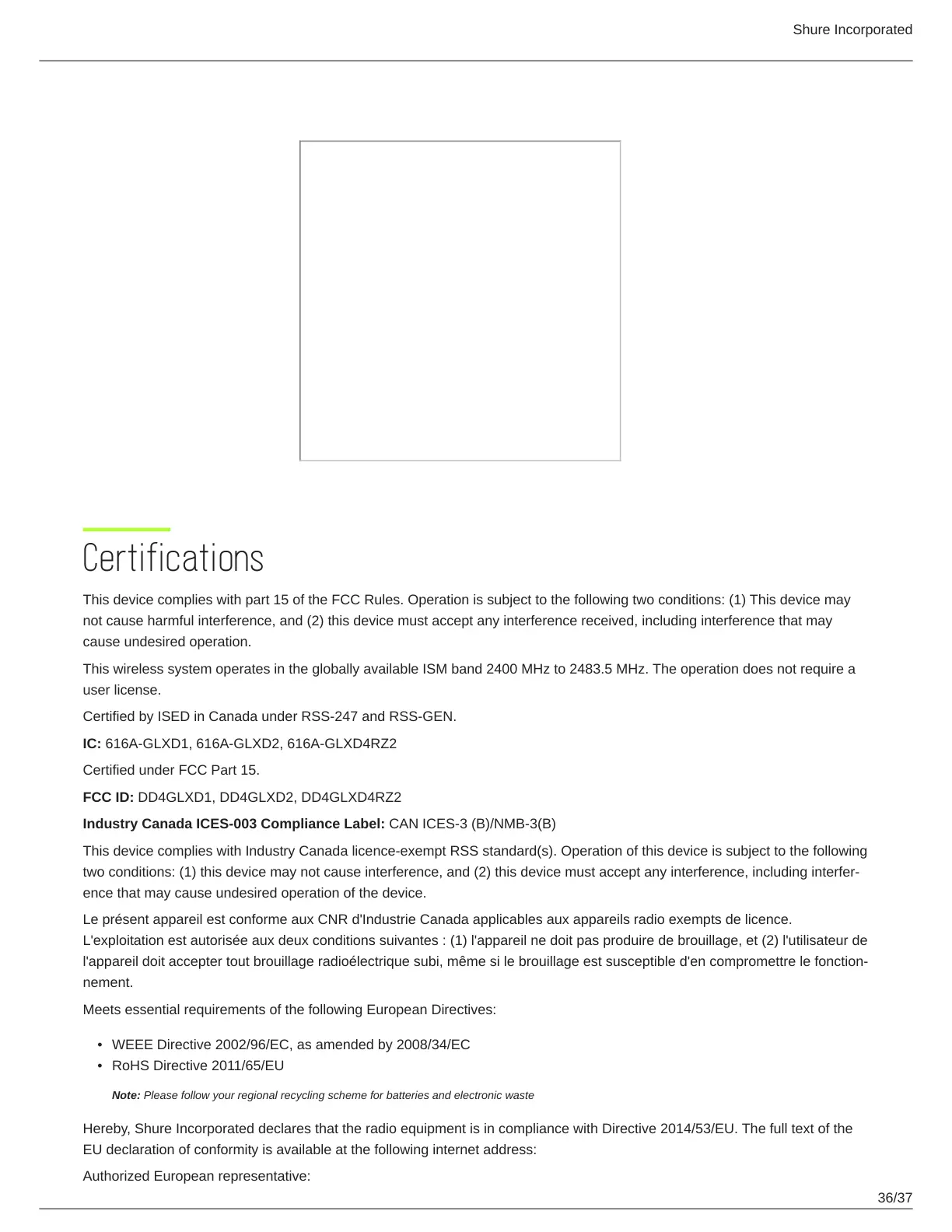 EU declaration of conformity is available at the following internet address: http://www.shure.com/europe/compliance