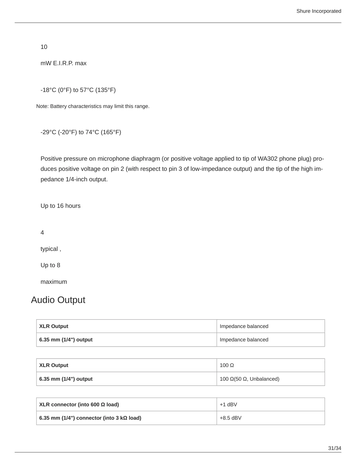 6.35 mm (1/4") output 100 Ω(50 Ω, Unbalanced)