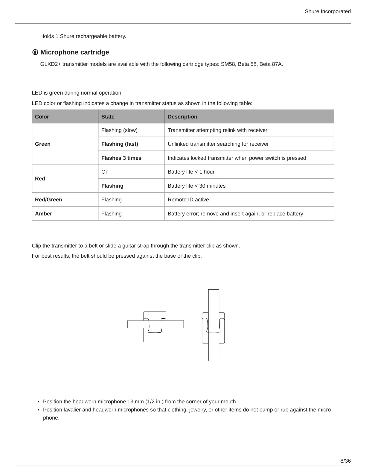 GLXD2+ transmitter models are available with the following cartridge types: SM58, Beta 58, Beta 87A.