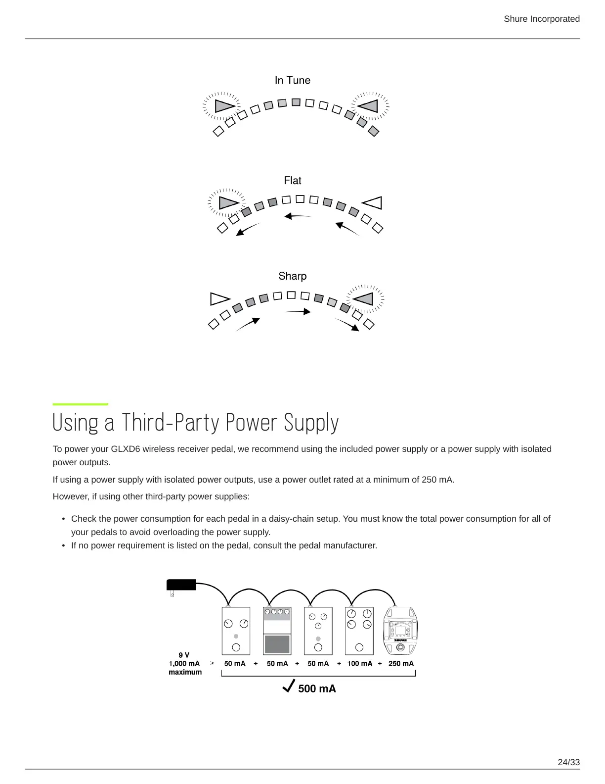 To power your GLXD6 wireless receiver pedal, we recommend using the included power supply or a power supply with isolated