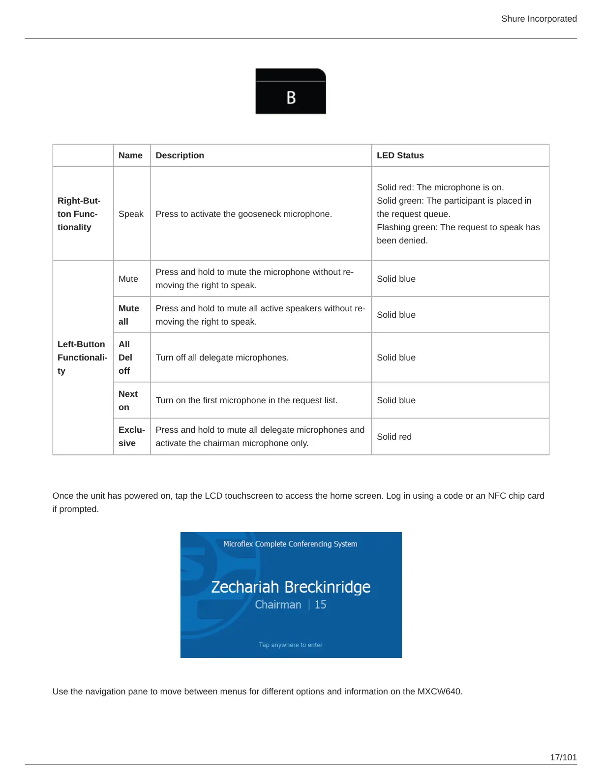Speak Press to activate the gooseneck microphone.