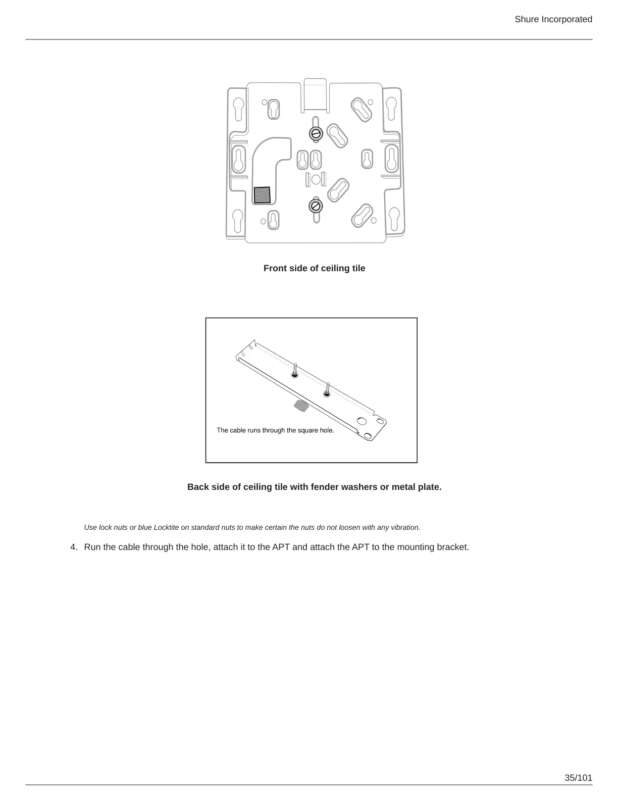 Run the cable through the hole, attach it to the APT and attach the APT to the mounting bracket.
