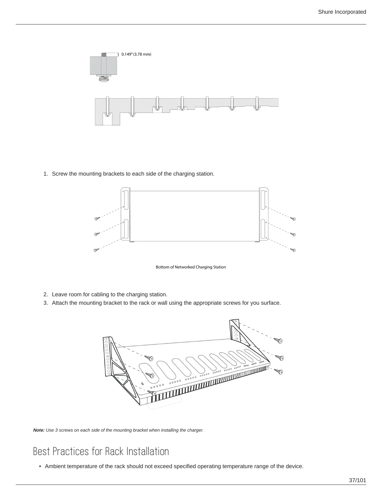 Note: Use 3 screws on each side of the mounting bracket when installing the charger.