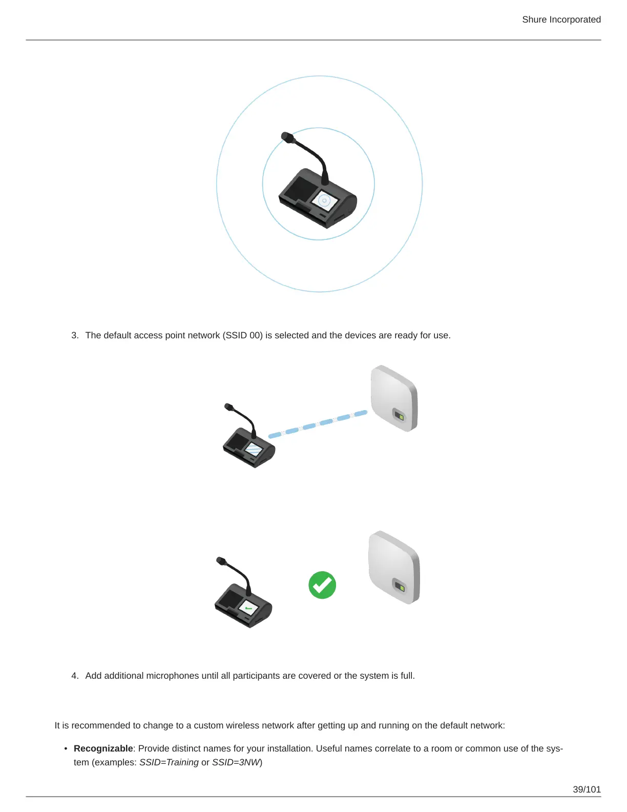 Add additional microphones until all participants are covered or the system is full.