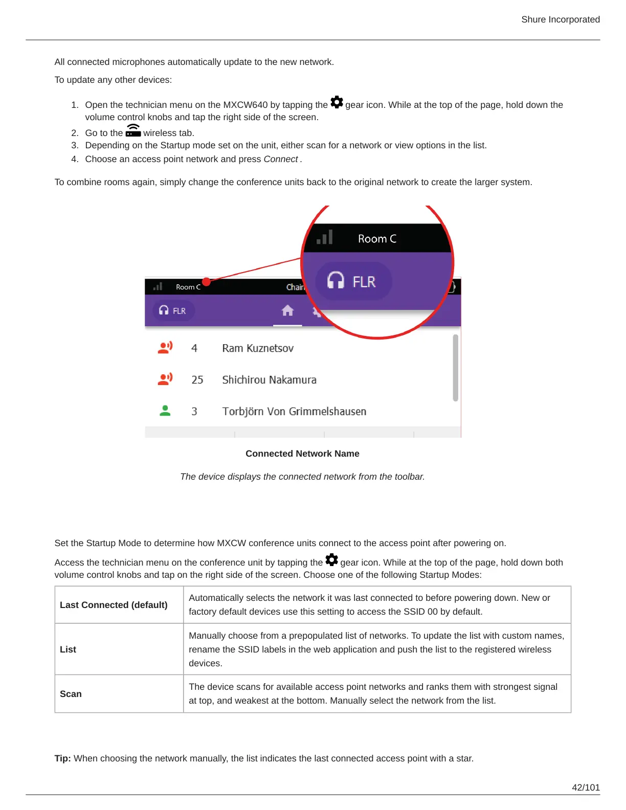 Set the Startup Mode to determine how MXCW conference units connect to the access point after powering on.