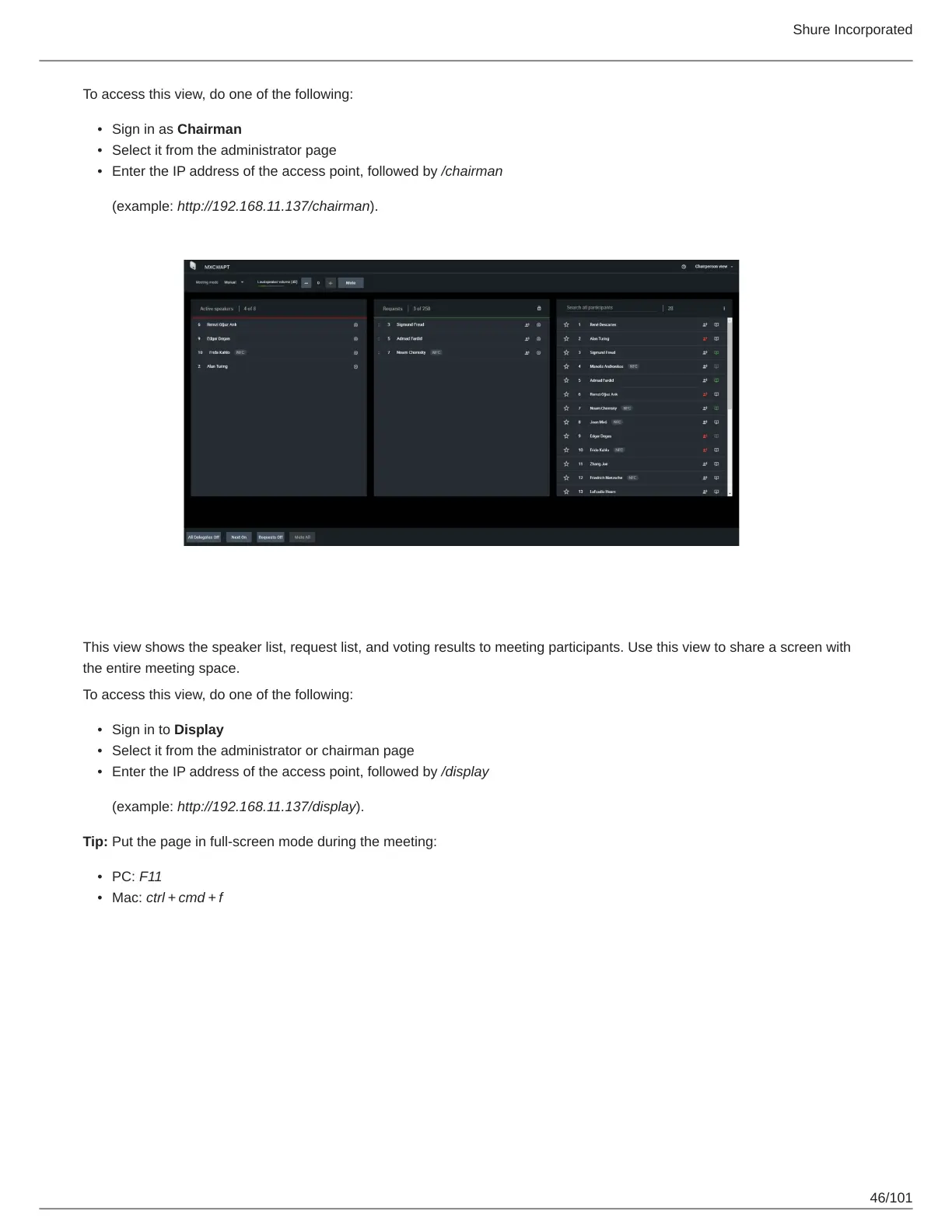 This view shows the speaker list, request list, and voting results to meeting participants. Use this view to share a screen with