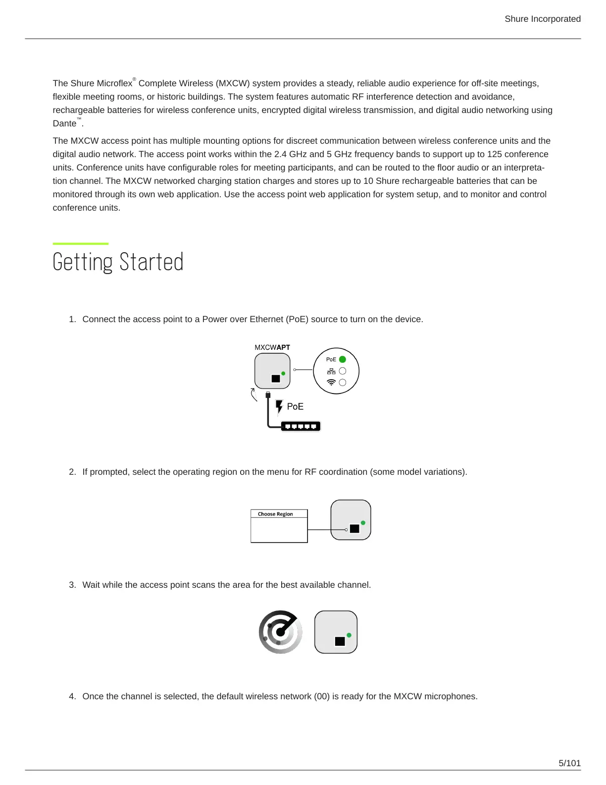 flexible meeting rooms, or historic buildings. The system features automatic RF interference detection and avoidance,