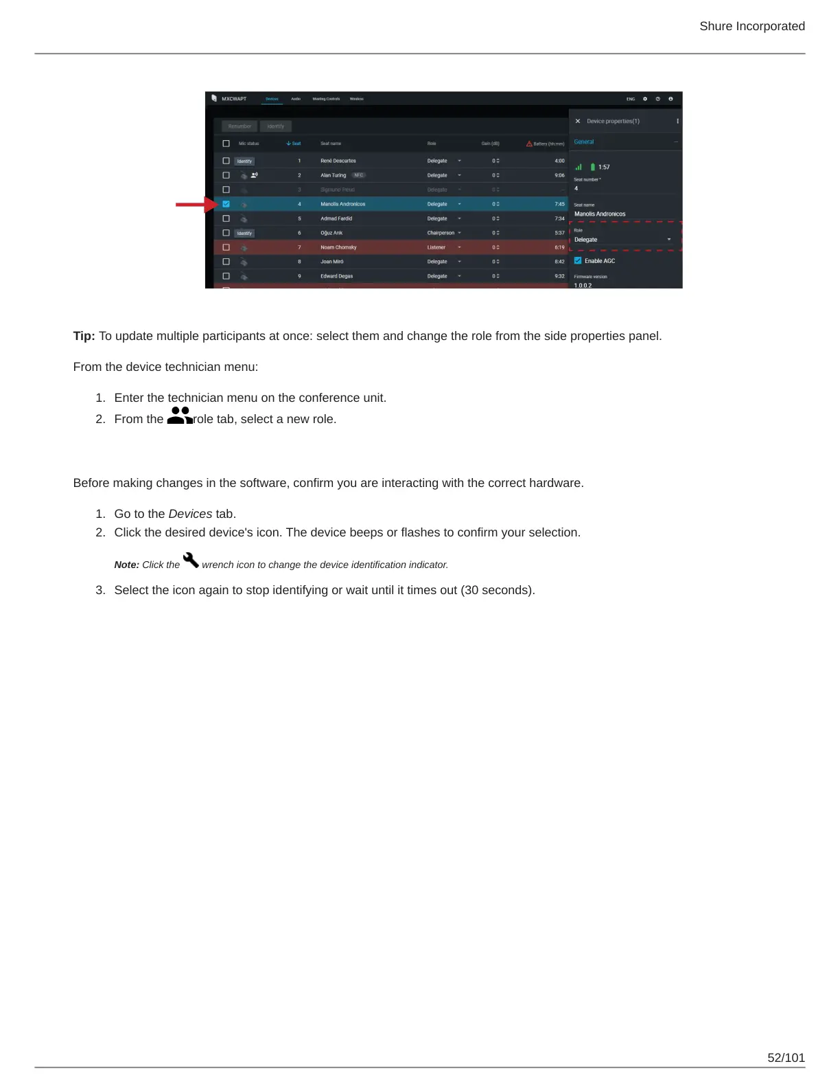 Tip: To update multiple participants at once: select them and change the role from the side properties panel.
