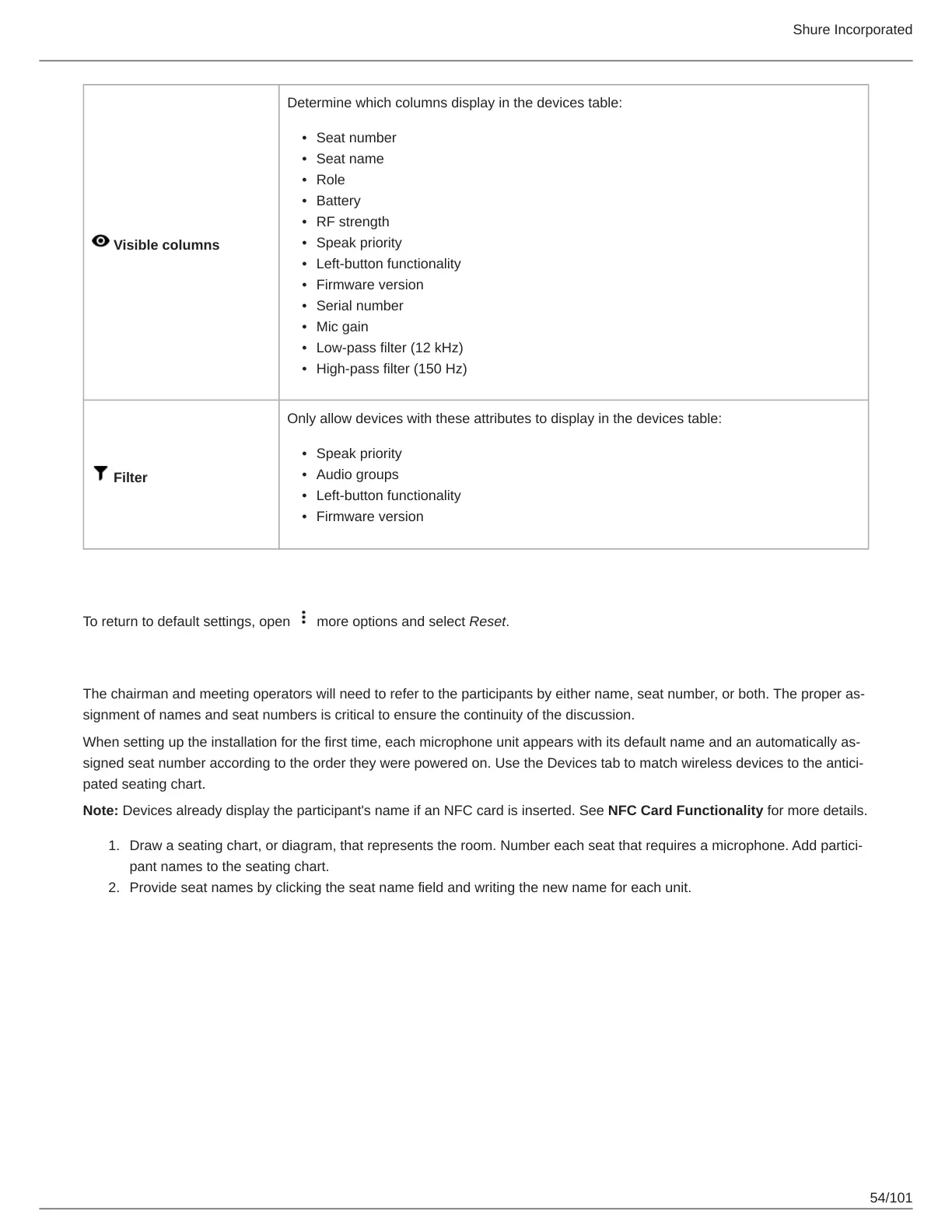 Draw a seating chart, or diagram, that represents the room. Number each seat that requires a microphone. Add partici