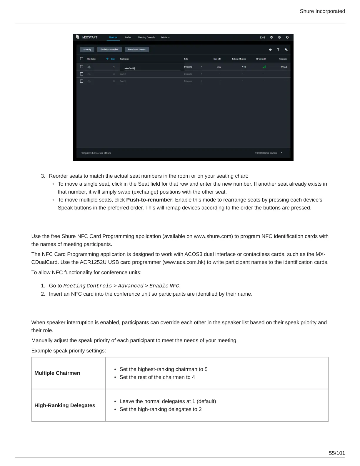 To move multiple seats, click Push-to-renumber. Enable this mode to rearrange seats by pressing each device's