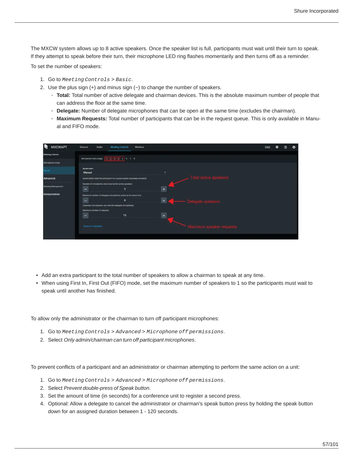 Delegate: Number of delegate microphones that can be open at the same time (excludes the chairman).