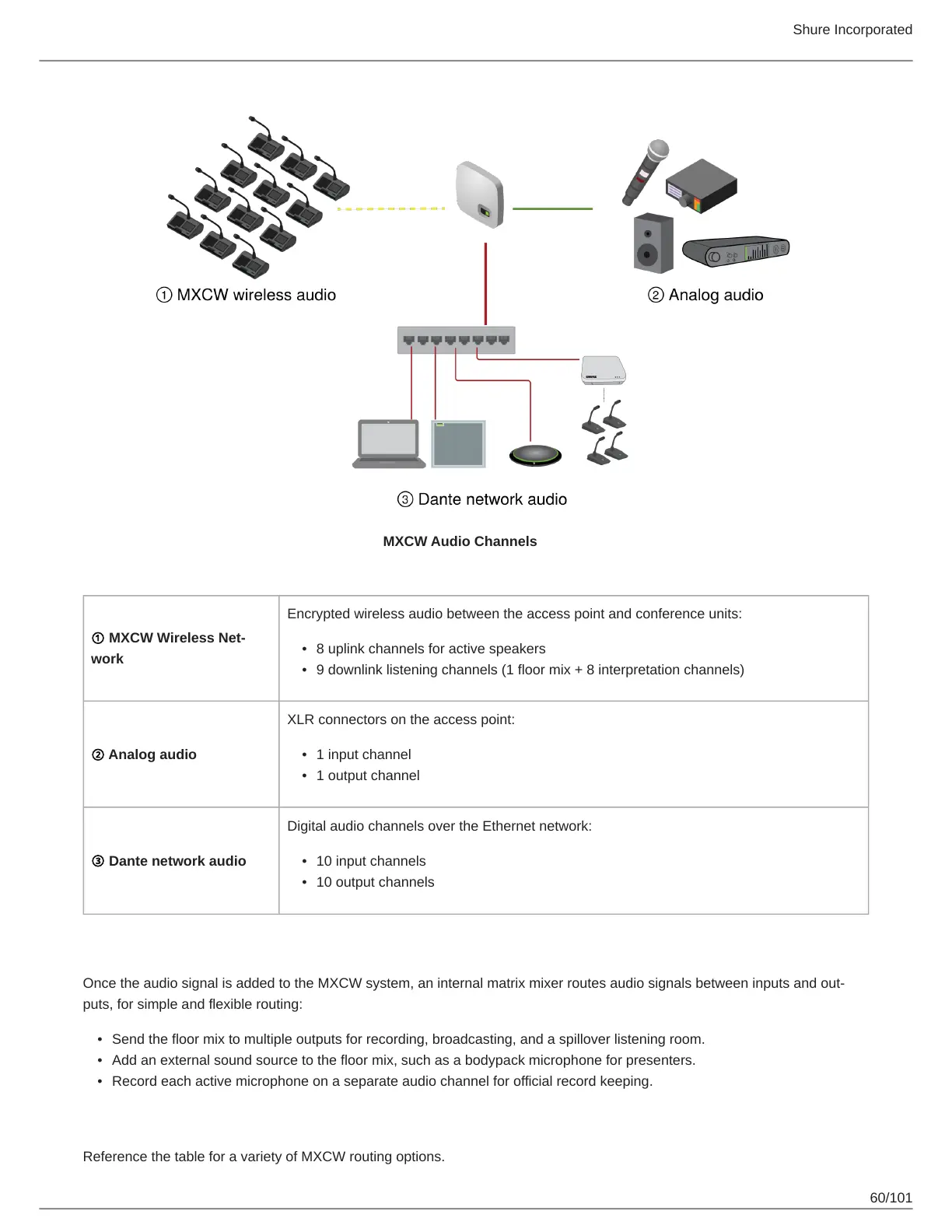 Once the audio signal is added to the MXCW system, an internal matrix mixer routes audio signals between inputs and out