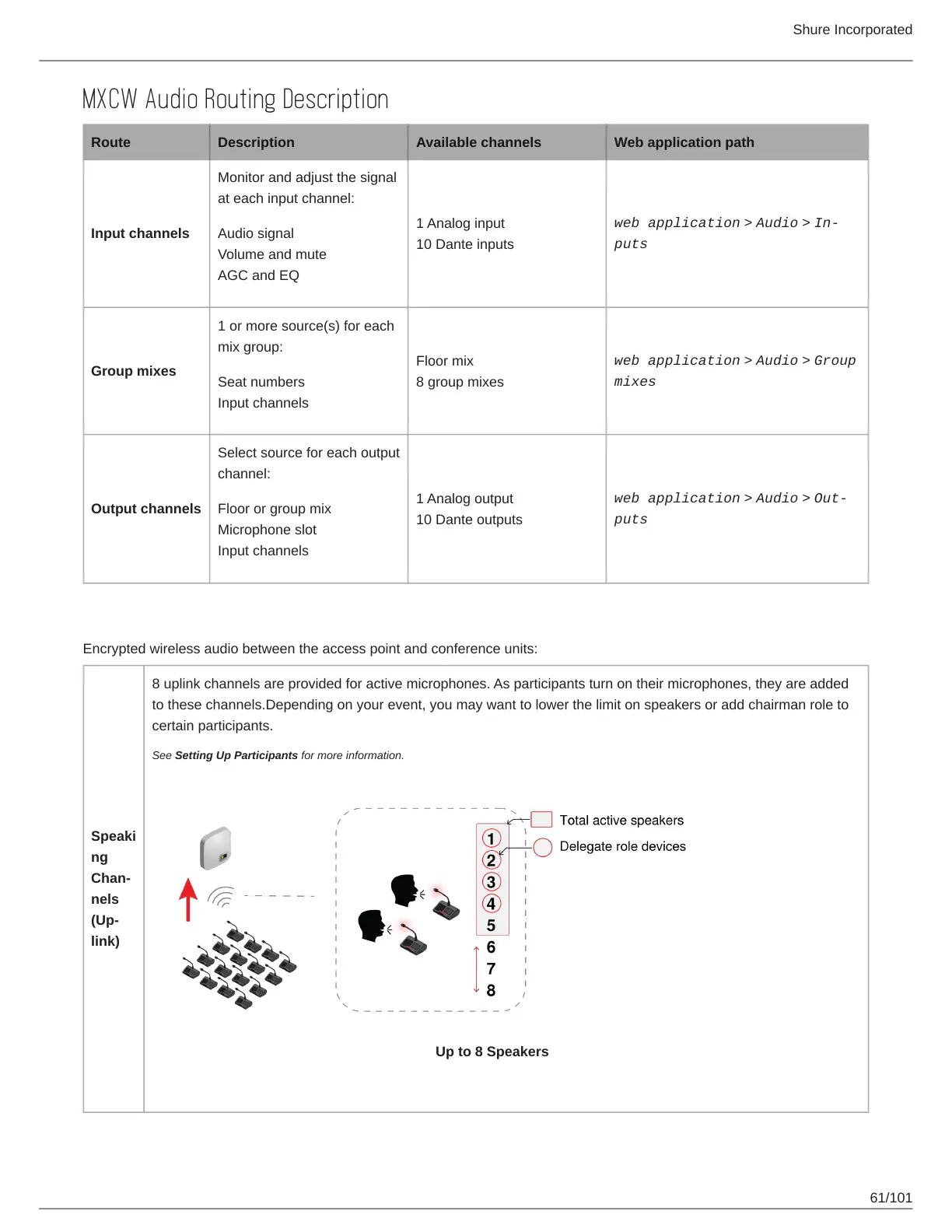 8 uplink channels are provided for active microphones. As participants turn on their microphones, they are added