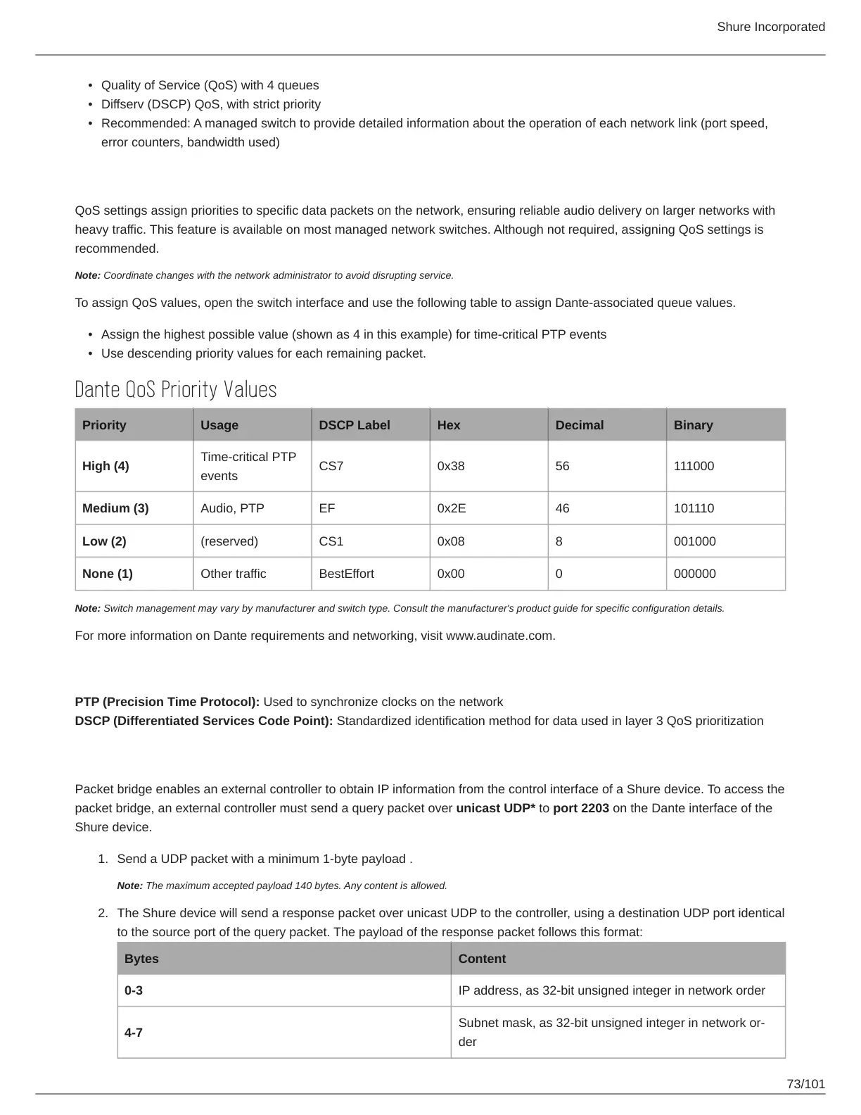 packet bridge, an external controller must send a query packet over unicast UDP* to port 2203 on the Dante interface of the