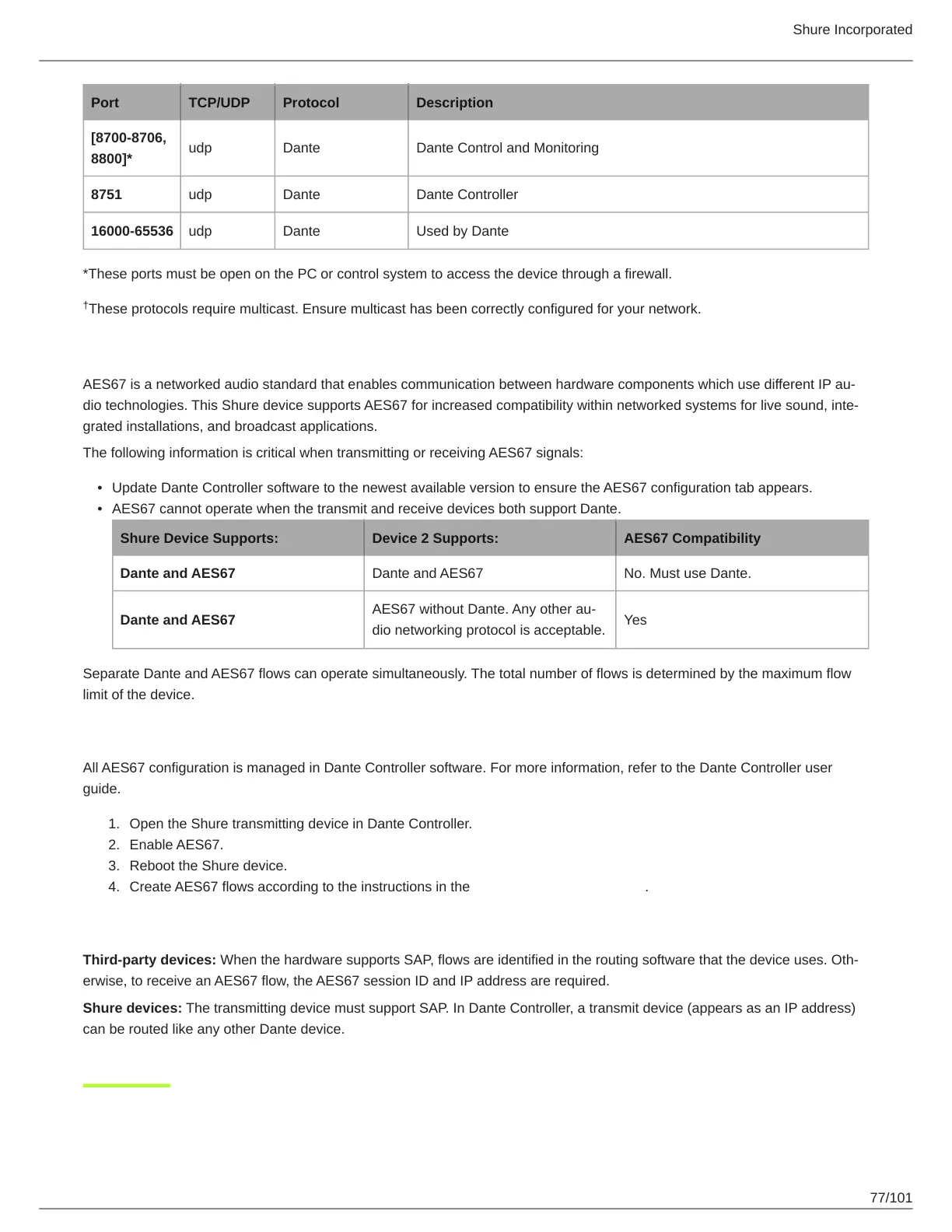 Shure Device Supports: Device 2 Supports: AES67 Compatibility