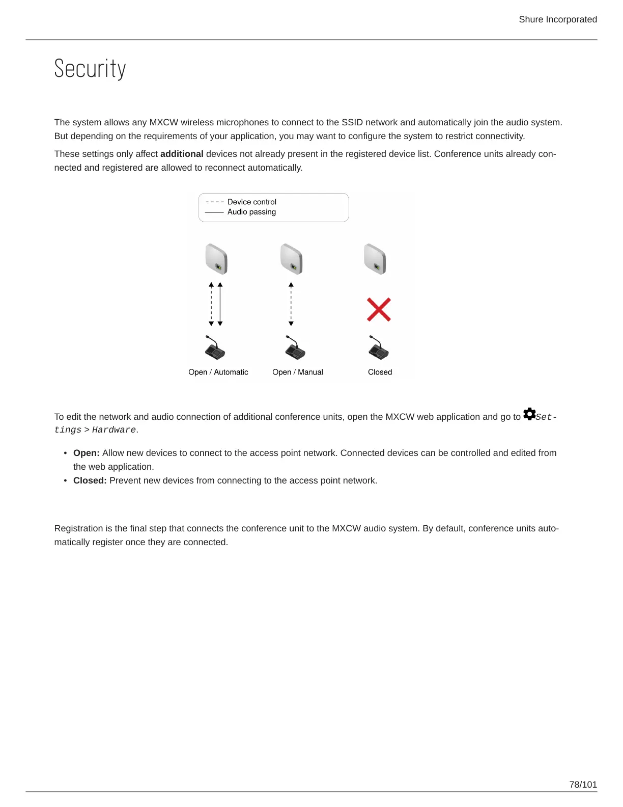 Registration is the final step that connects the conference unit to the MXCW audio system. By default, conference units auto