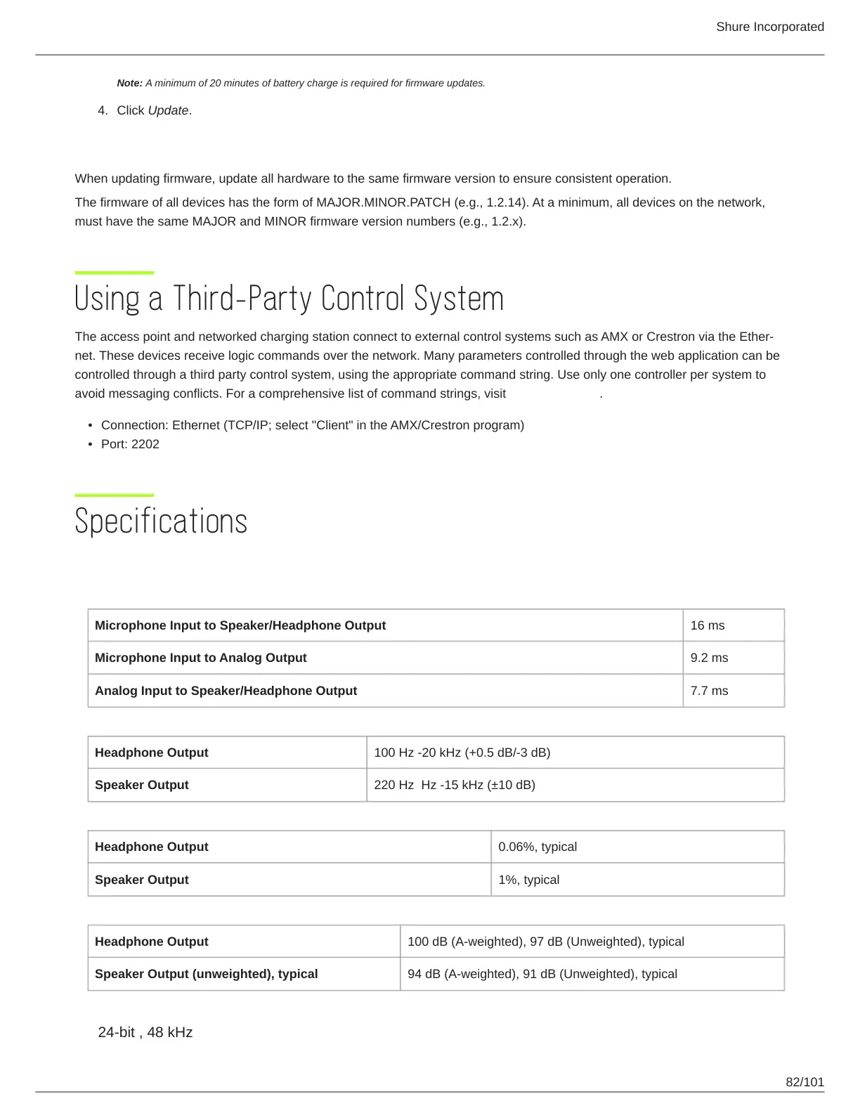 avoid messaging conflicts. For a comprehensive list of command strings, visit pubs.shure.com.