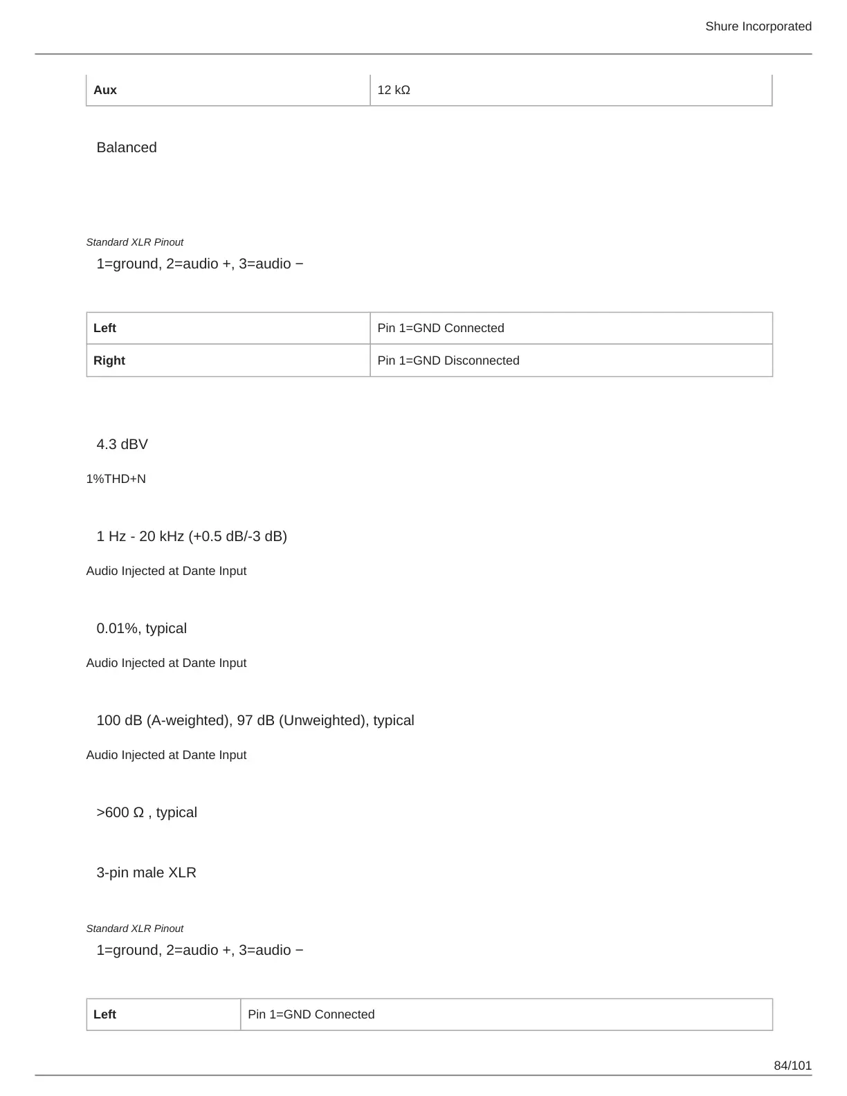 100 dB (A-weighted), 97 dB (Unweighted), typical