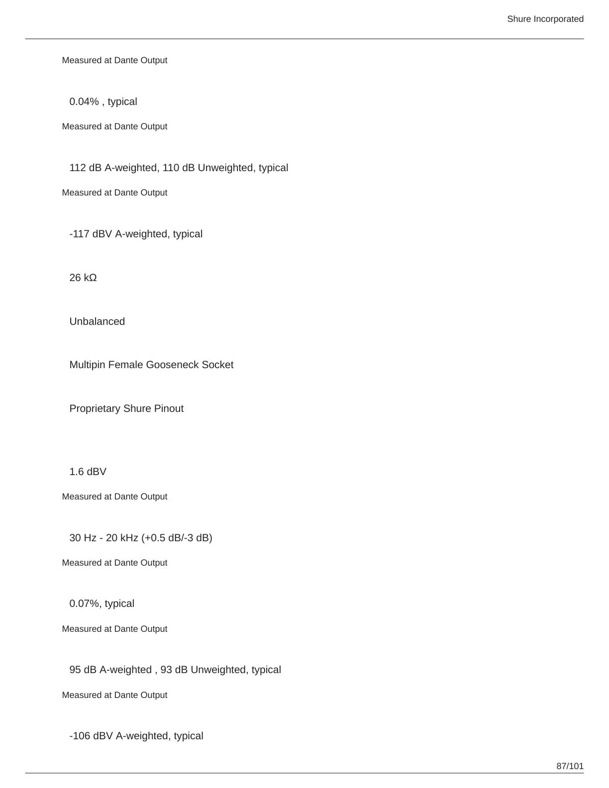 Measured at Dante Output