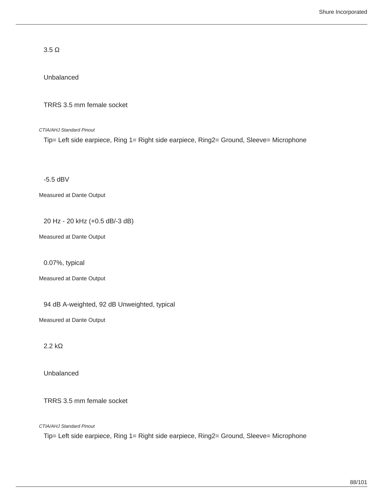 Measured at Dante Output