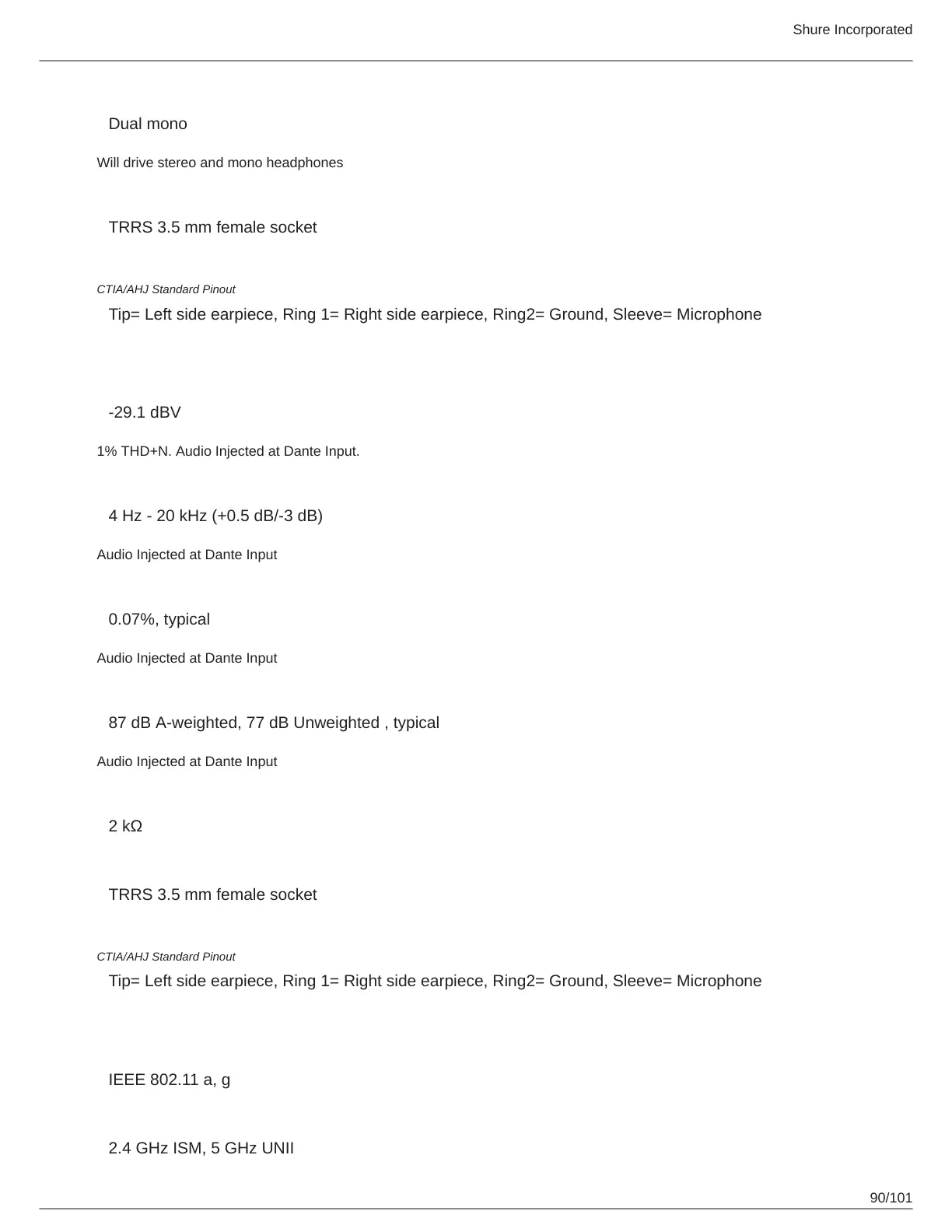 4 Hz - 20 kHz (+0.5 dB/-3 dB)