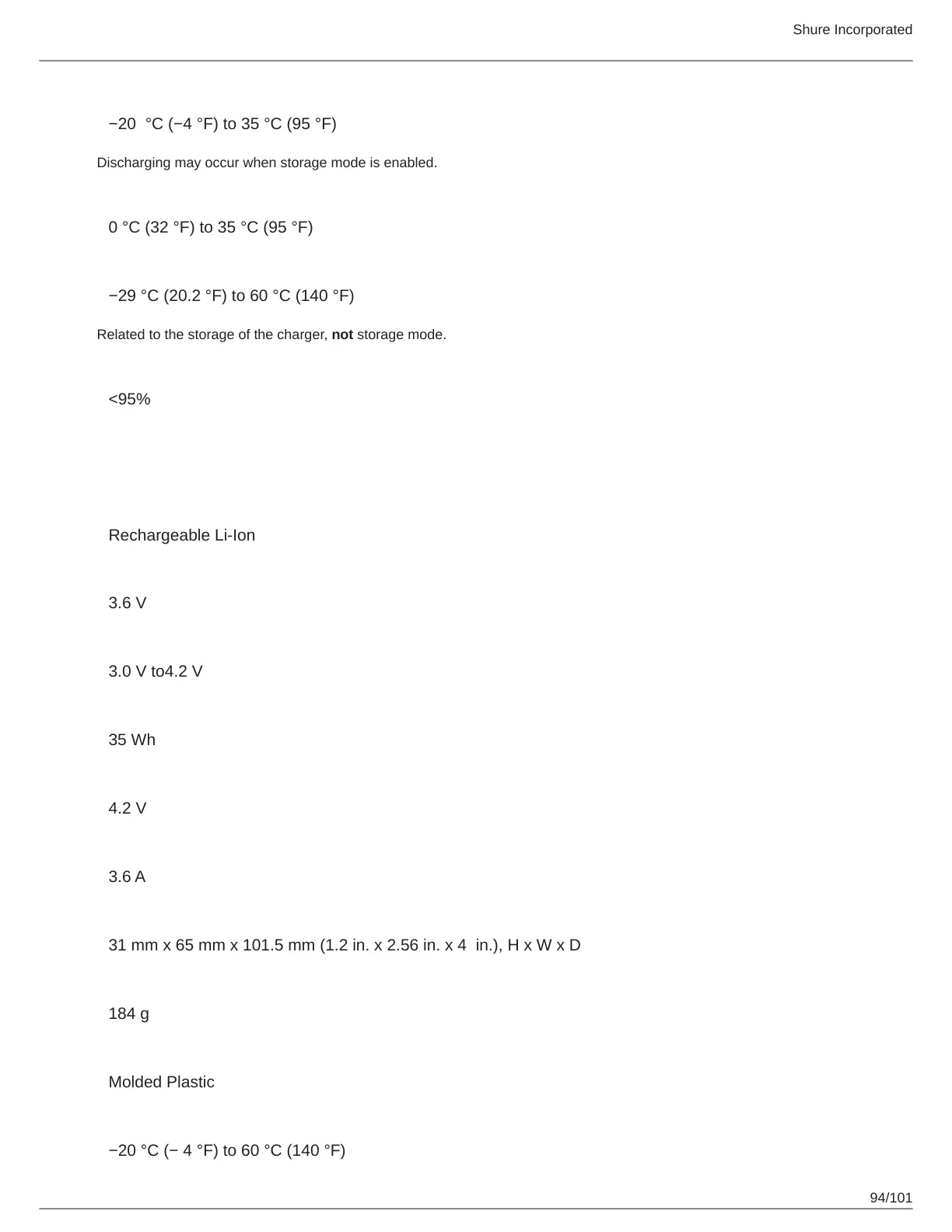 −20 °C (−4 °F) to 35 °C (95 °F)