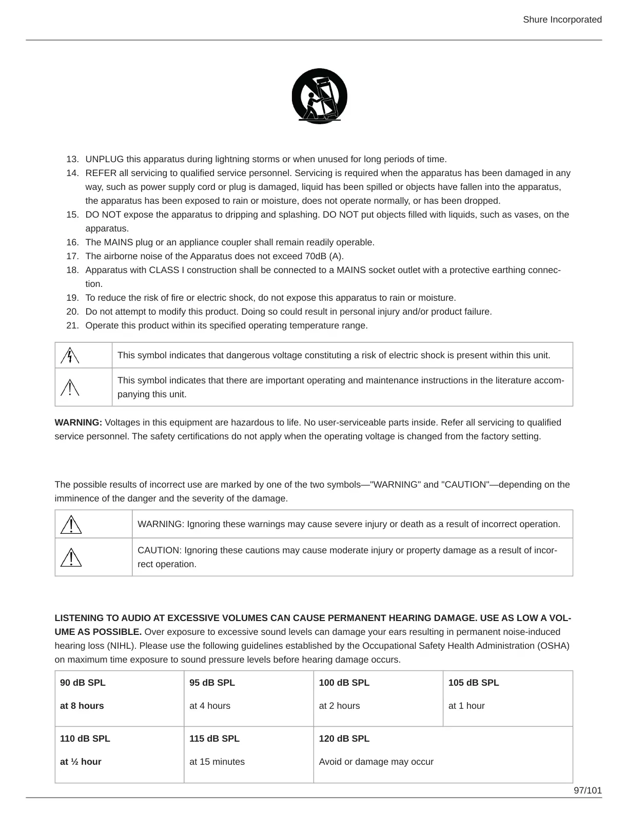 UME AS POSSIBLE. Over exposure to excessive sound levels can damage your ears resulting in permanent noise-induced