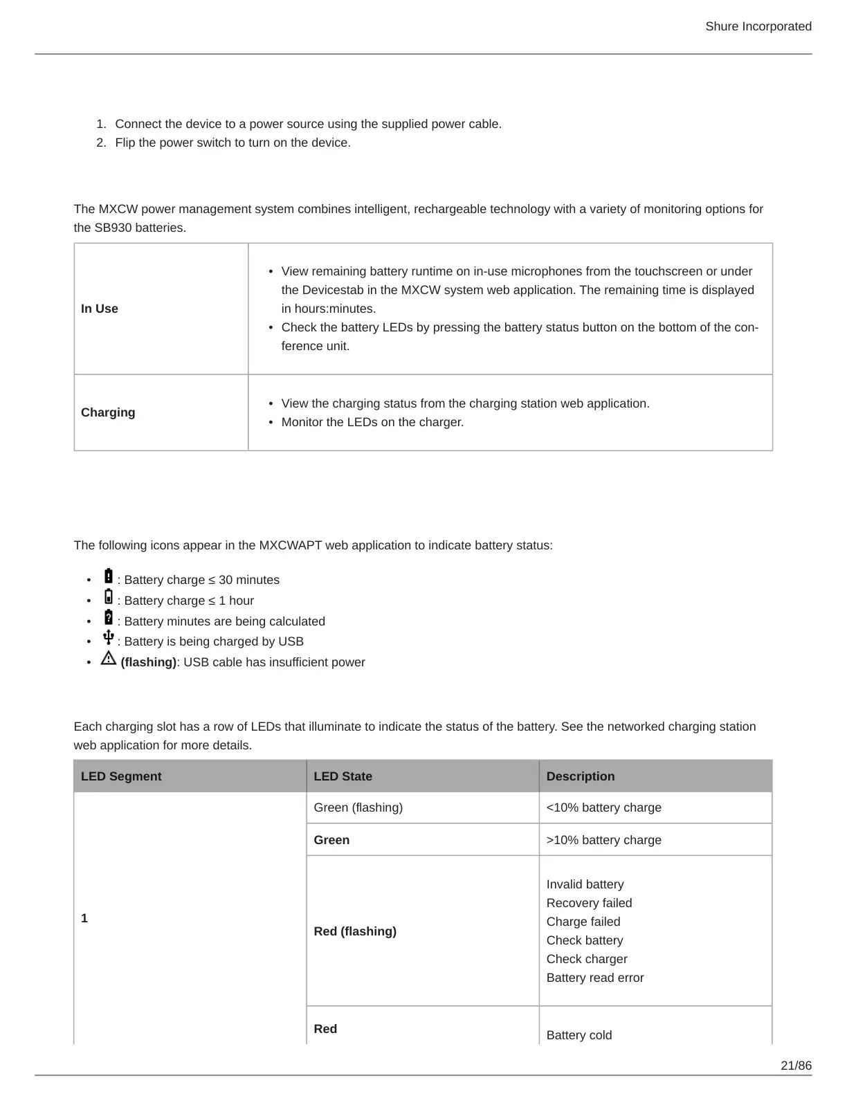 The following icons appear in the MXCWAPT web application to indicate battery status: