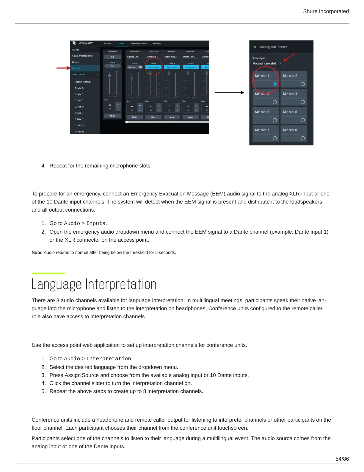 of the 10 Dante input channels. The system will detect when the EEM signal is present and distribute it to the loudspeakers