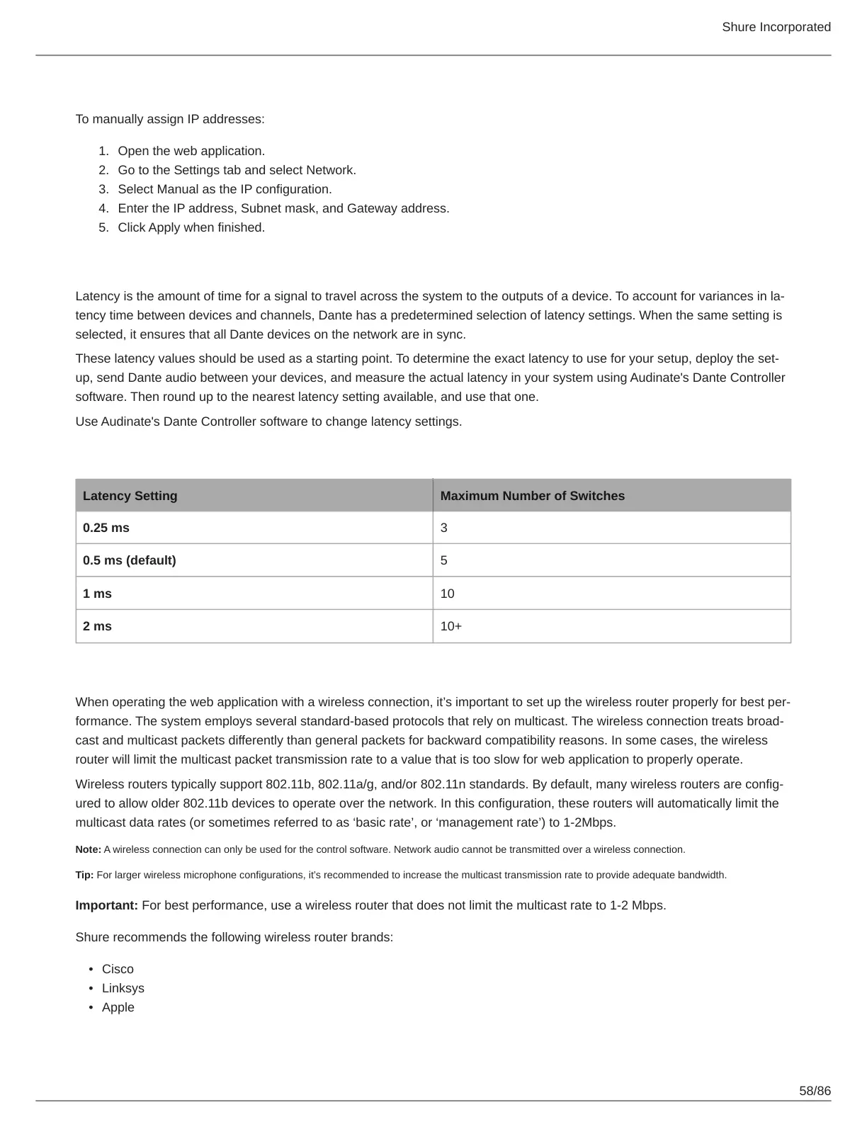 Tip: For larger wireless microphone configurations, it’s recommended to increase the multicast transmission rate to provide adequate bandwidth.