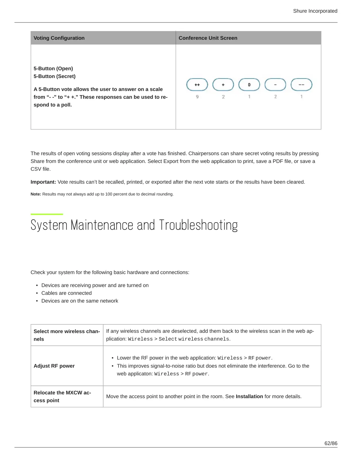 Important: Vote results can’t be recalled, printed, or exported after the next vote starts or the results have been cleared.