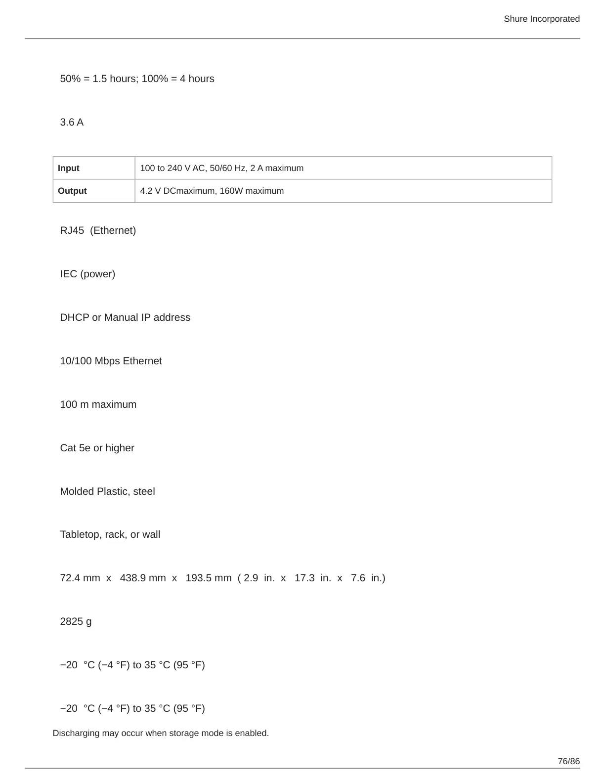 Discharging may occur when storage mode is enabled.